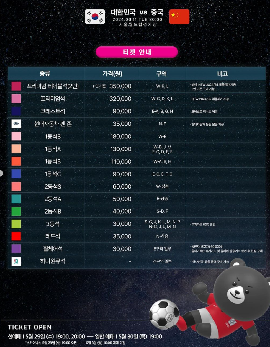 ✅경기 당일 6월 11일(화) 14시부터 판매 (온라인 조기 매진 시 현장 판매 미진행)